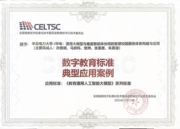 我校人工智能应用“i华电”成功入选2025年CELTSC标准创新与应用典型案例